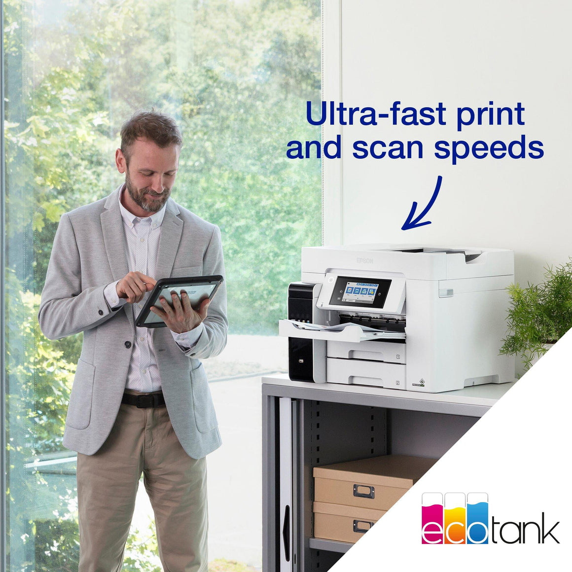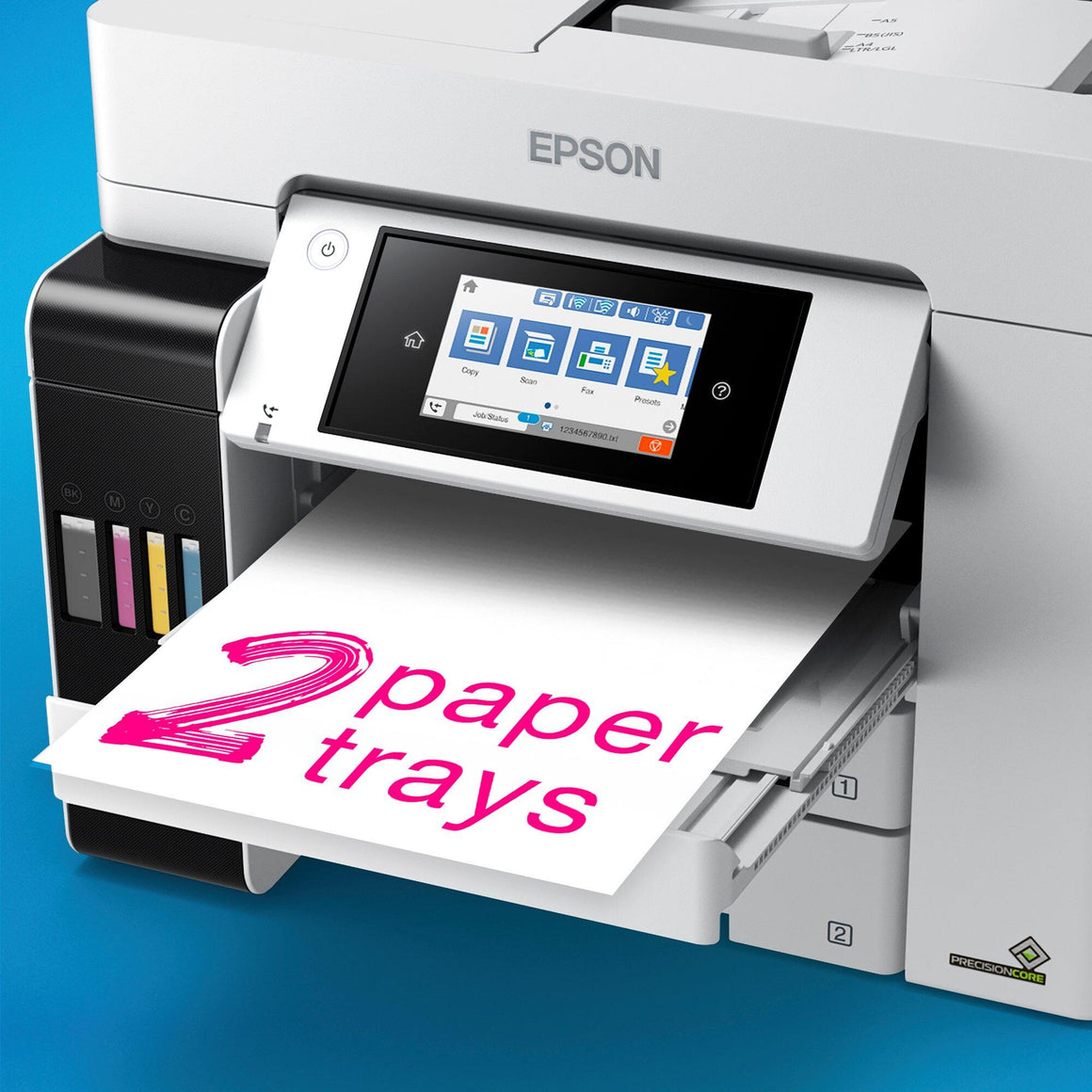 It's easy to print from mobiles, tablets and laptops using the ET-5885. With Wi-Fi and Wi-Fi Direct, you can send documents to print from smart devices using the Smart Panel app*. Also features Ethernet and PCL support.