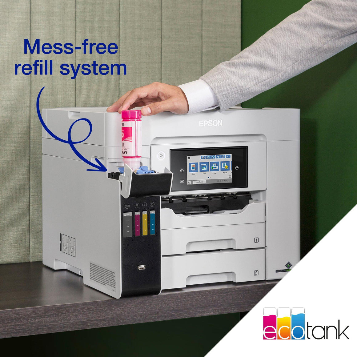 Save every time you print with this EcoTank. It features large ink tanks that you fill with low-cost ink bottles, delivering incredibly low costs-per-page. Thanks to Heat-Free PrecisionCore technology, you can also keep your energy consumption down to a minimum, saving on energy bills