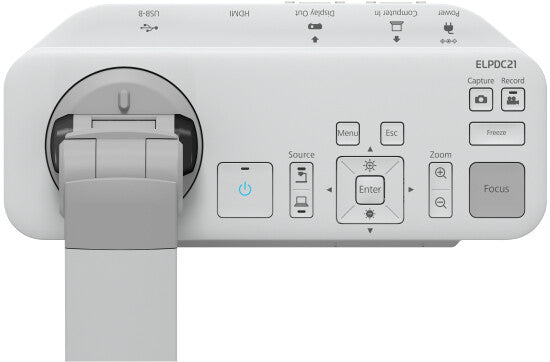 Advanced document camera for use with Epson education projectors, it features both optical and digital zoom for clear magnification to enhance classroom learning