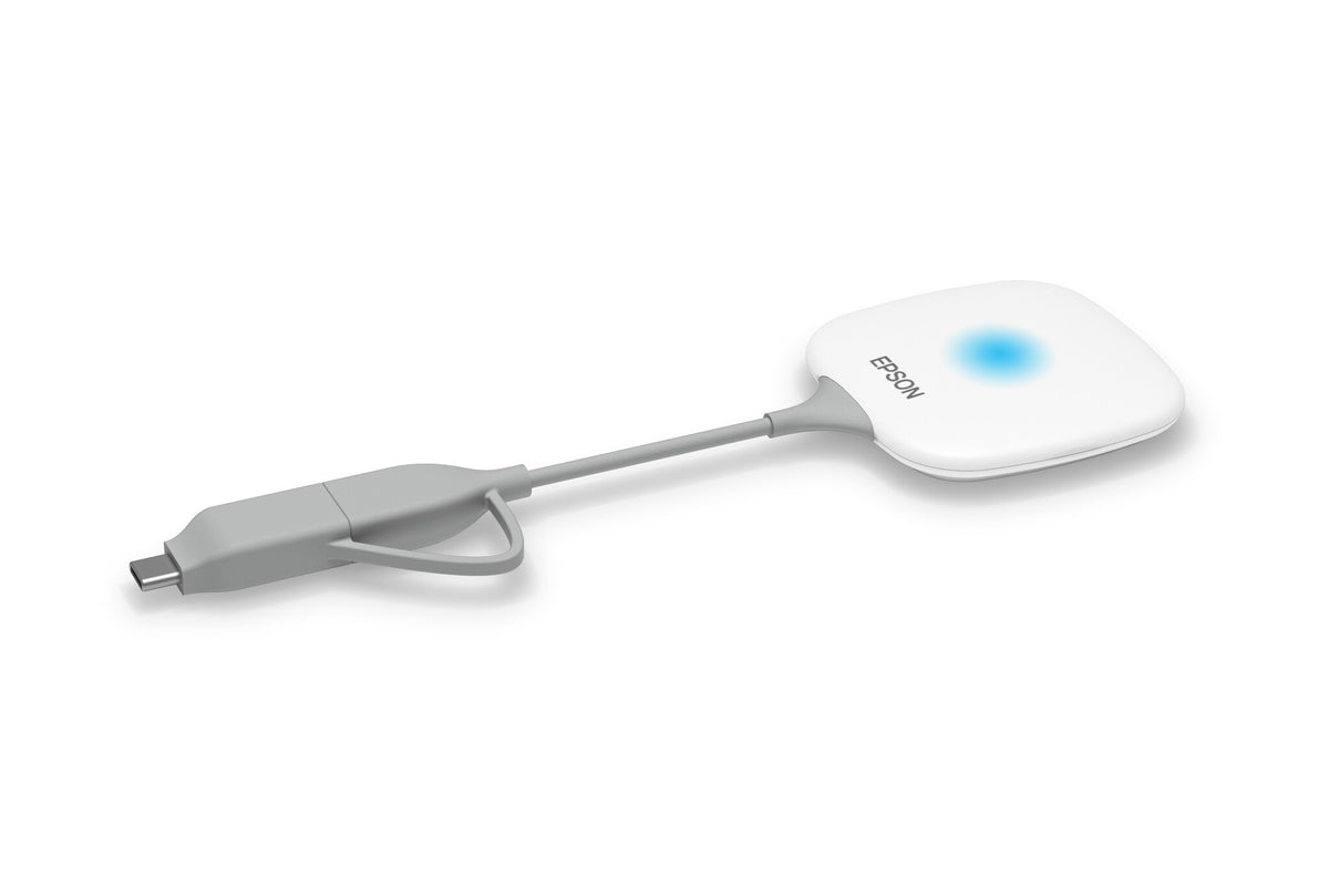 It's all simple - plug the wireless transmitter into the laptop and click on the built-in app to begin transmitting content to the display. Users of mobile devices can also connect using the Miracast protocol or Epson's free iProjection app.
