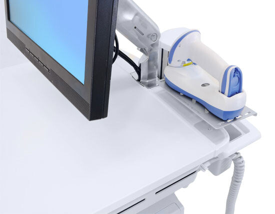 This handy shelf is designed to hold a wireless scanner base at a convenient working height on StyleView carts. Attach it to the worksurface or to the back of the cart. Also can be easily integrated into a Wall Track system.