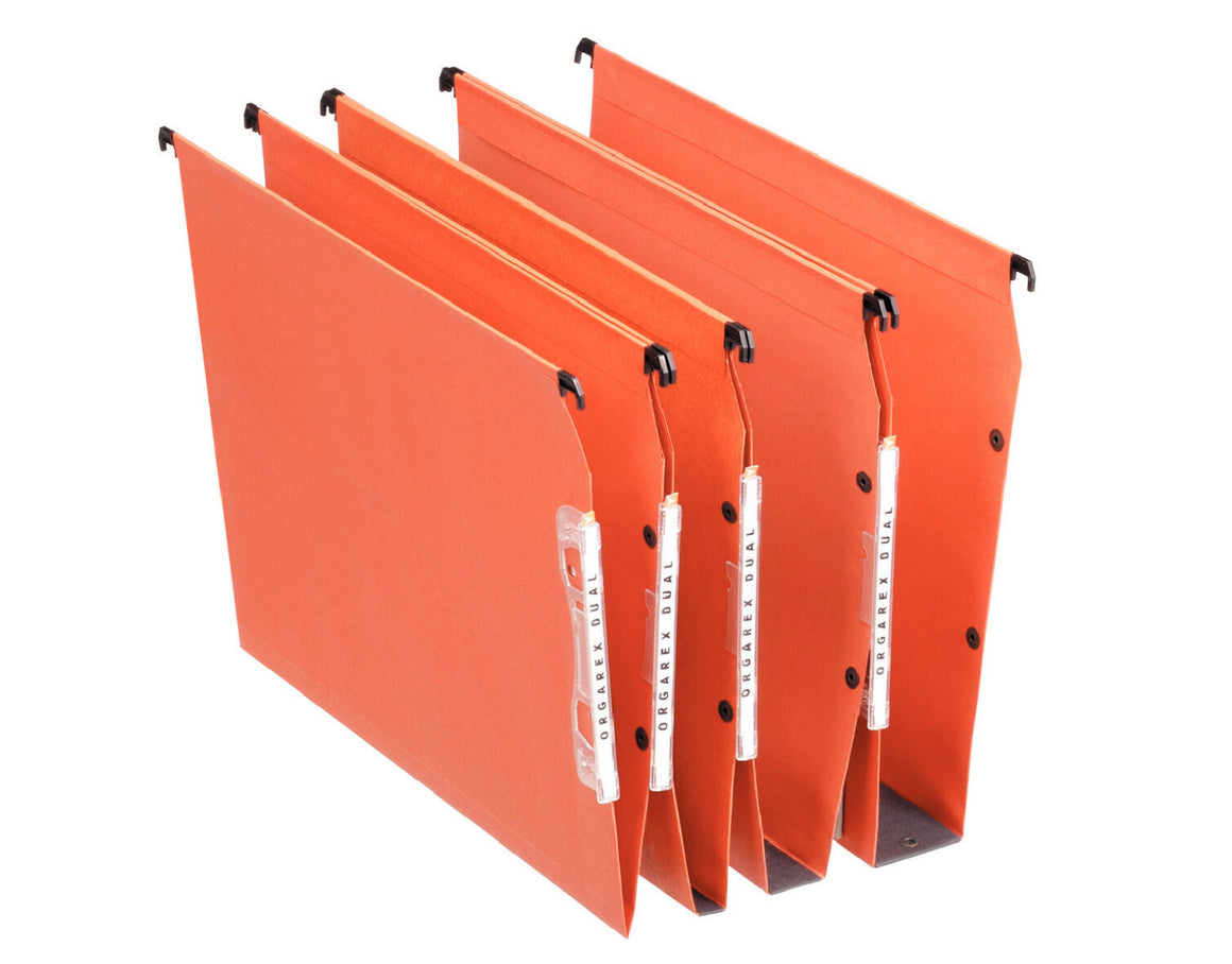 Standard lateral suspension file (LMG) with push-button linking system made from strong paper.