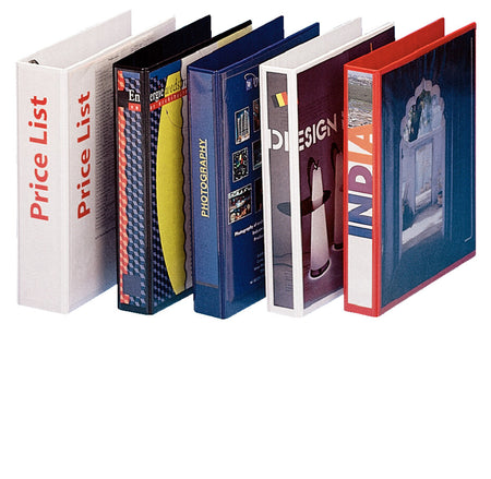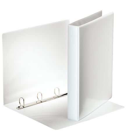 Durable presentation binders available in a variety of capacities with D ring and wipe clean cover. • Clear pocket front and spine for personalisation • Heavy board covered in PP • Available in a range of A4 capacities • 2 and 4 ring mechanism • Available in white, red, blue and black • Packaged in Esselte branded box • Esselte branded product labelling