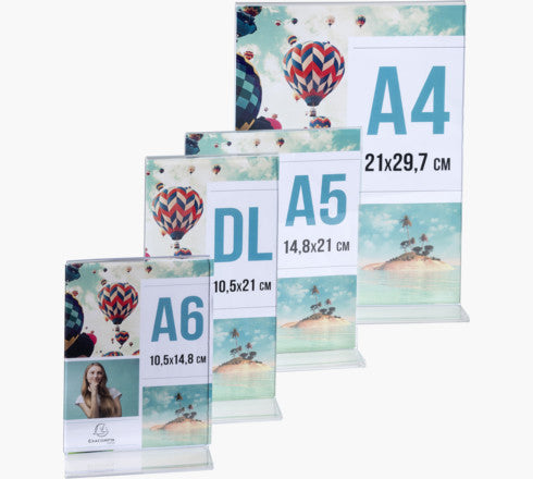 The Exacompta vertical upright sign holder is ideal for displaying your photos or documents on a table, desk or shelf.