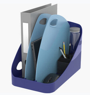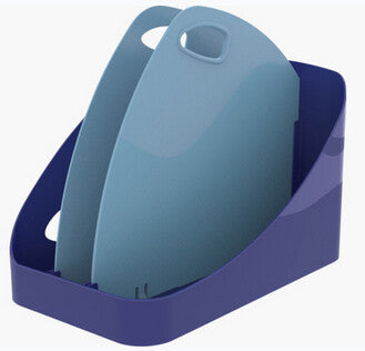 This product has been designed to fit in all standard lockers. Its elegant, refined and workable design allows you to leave it on your desk during the day and use it as a vertical document sorter. Its handle is solid and ergonomic. It is made of recycled plastic from household waste and is Blue Angel Certified