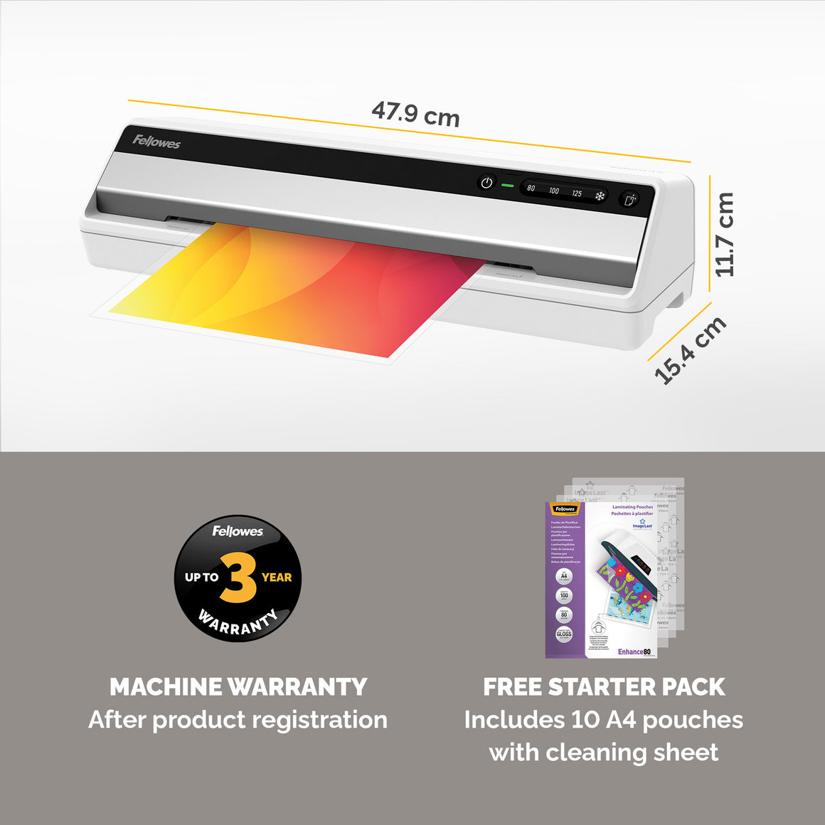 - STARTER PACK INCLUDED - Your Fellowes A3 laminator includes a 10 A4 document starter pack with samples of Fellowes laminating pouches that give a superior finish to your laminated work