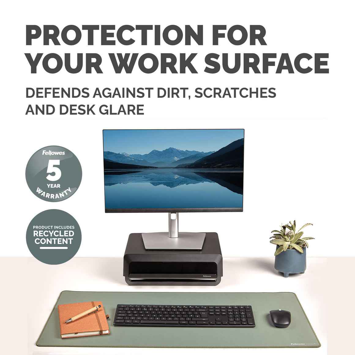 - MADE FROM 83% RECYCLED CONTENT - This Fellowes desk mat is made from 83% post-consumer recycled content