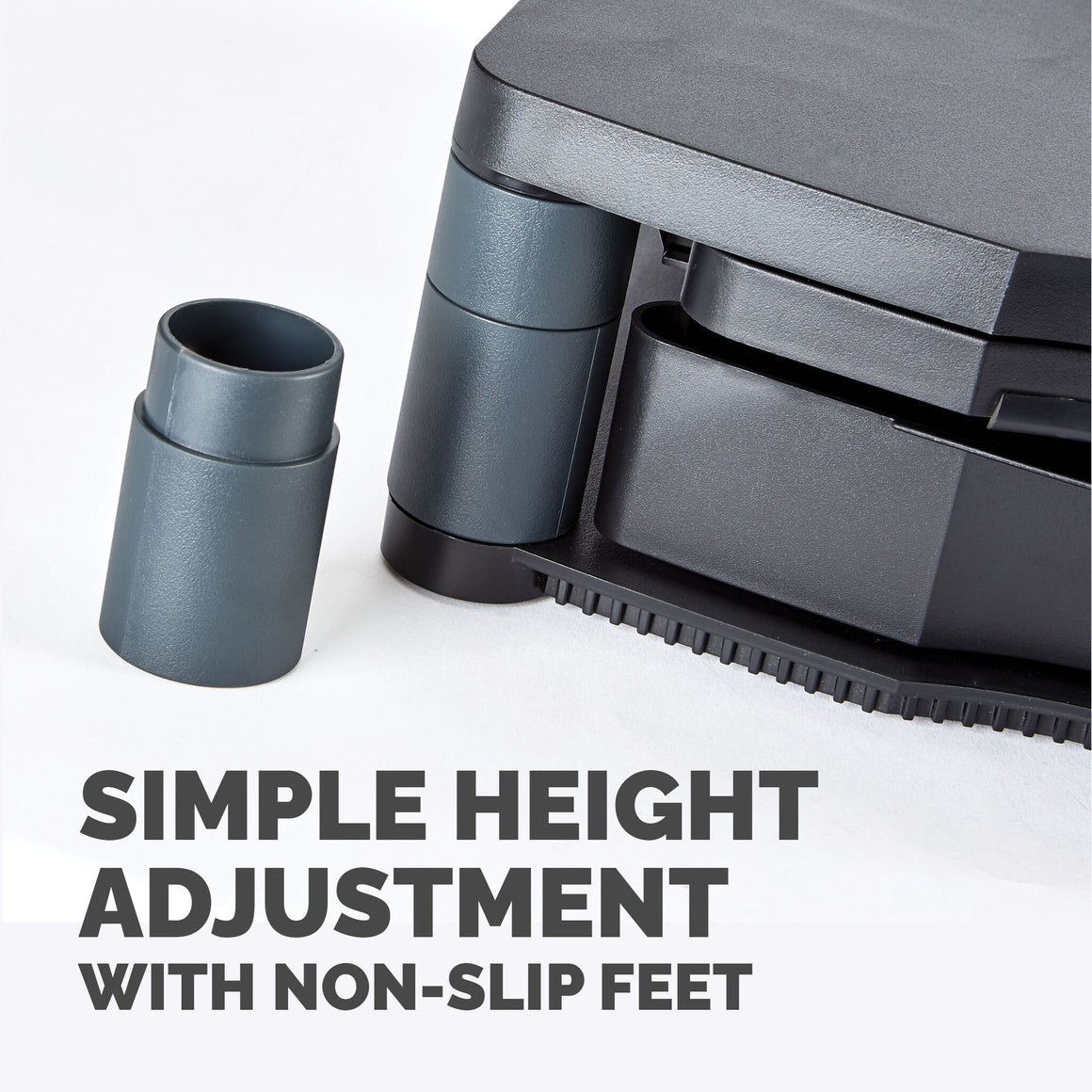 - MULTIPLE HEIGHT ADJUSTMENTS - The Premium monitor riser plus offers three different stacking height adjustments to maximise viewing comfort (Height Adjustments: 11.5/13.5/16.5cm)