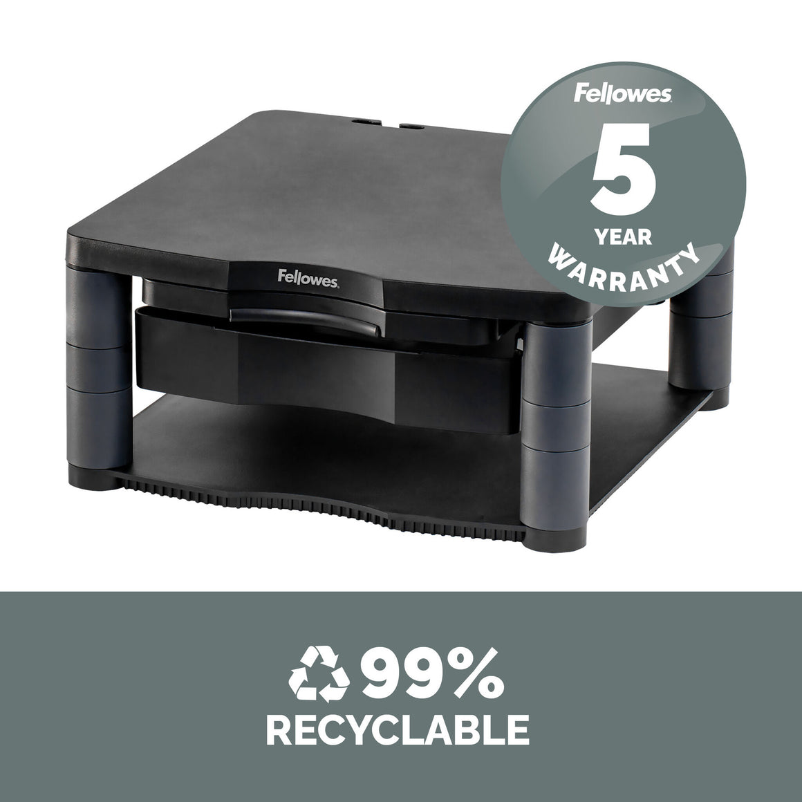- MINIMISE DISCOMFORT - Help minimise discomfort in your workspace by placing your monitor at a more ergonomically correct viewing position to suit you with the Fellowes Standard monitor riser