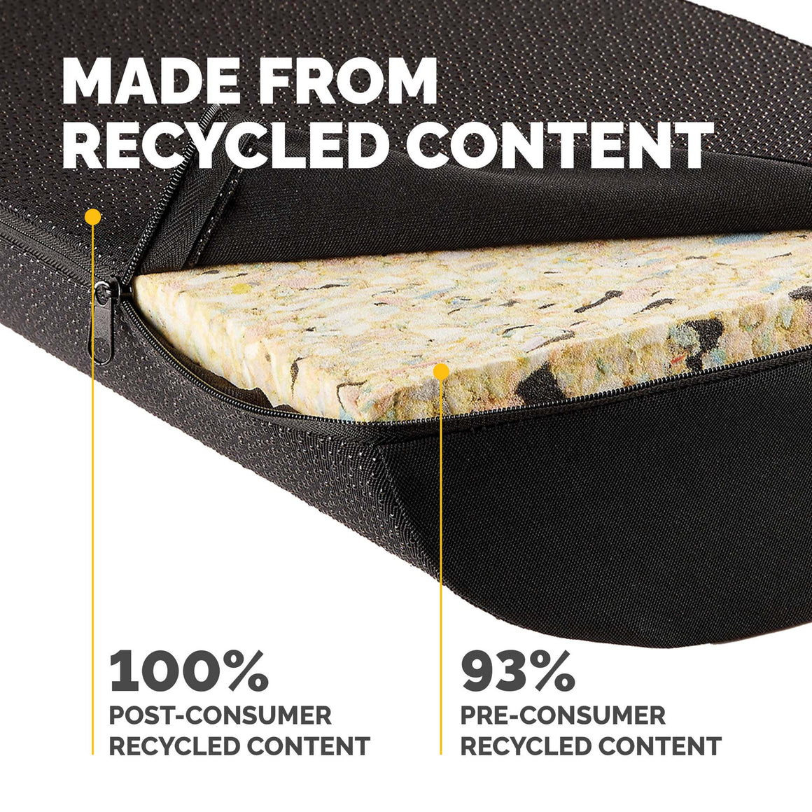 - MADE FROM RECYCLED CONTENT - The foam is made from 93% pre-consumer recycled content resulting in a lower carbon footprint compared with a virgin foam. The fabric cover is made from 100% post-consumer recycled polyester