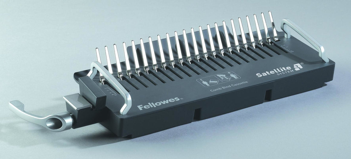 The Galaxy-E 500 is a high performance, electric comb binder ideal for large office, heavy duty use. Capable of binding up to 500 sheets and including many user friendly features, the Galaxy 500 is designed to make binding heavy workloads more manageable and enables you to easily produce a professional-looking bound document. Only the Galaxy range features the removable Satellite System. If you constantly find yourself fighting against a deadline, this feature allows one person to punch whilst the other binds, saving valuable time in the office. As with all Fellowes comb binders the Galaxy 500 comes with the angled comb rake to make loading punched sheets much easier and smoother. Vertical sheet loading ensures consistent punch alignment for improved punch accuracy. Includes the punch selection for A4 & A5 sized documents and back margin adjustment selector for thicker documents. Also comes with the front access, full size storage tray with patented comb and document measure for quick selection of the correct size supplies and a handy chip tray that automatically bursts open when full to eliminate jams. For the ultimate professional finish add style and colour to your documents through a wide range of Fellowes covers and combs. Includes a starter kit for 20 documents.