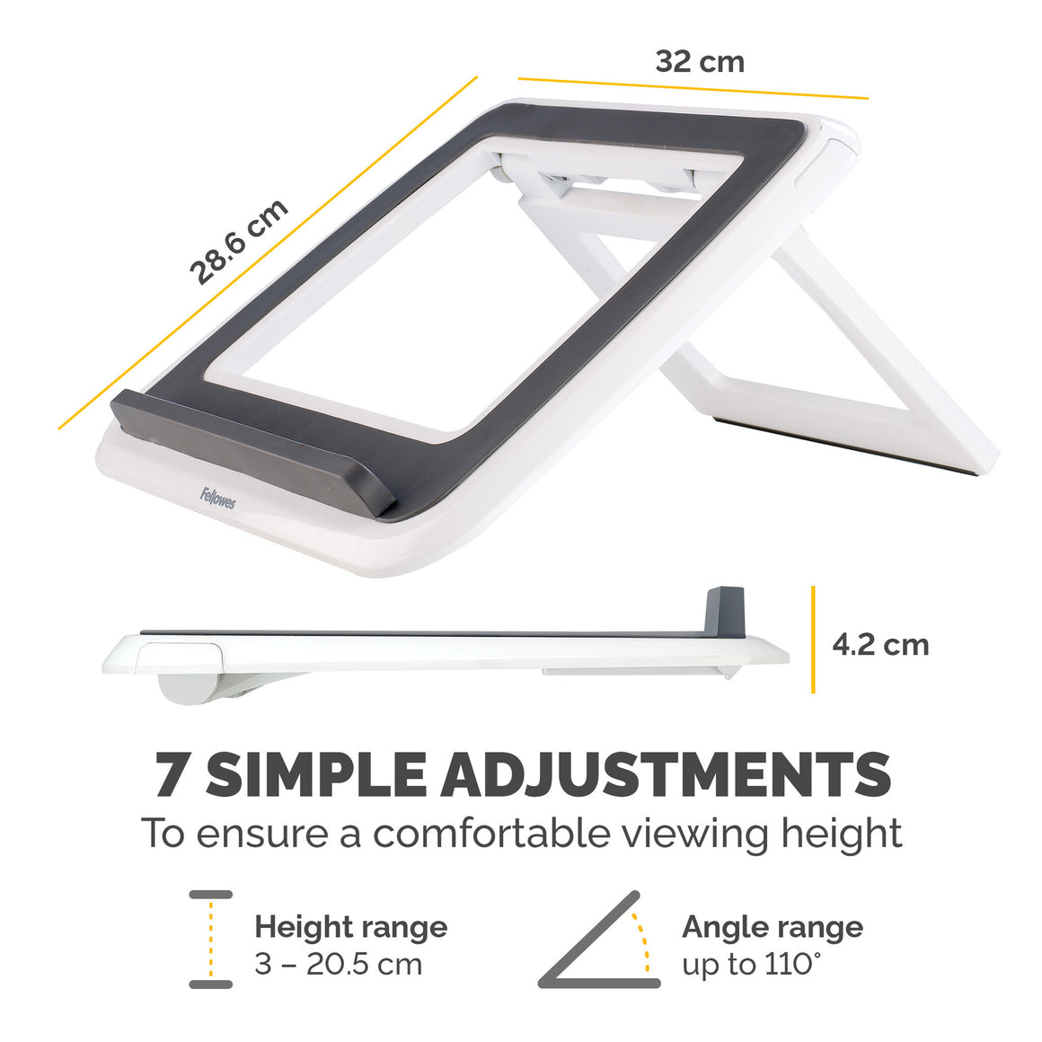 Fellowes Laptop Stand for Desk - I-Spire Quick Lift Adjustable Laptop Stand for the Home and Office - Portable Laptop Stand with 7 Height Adjustments - Max Monitor Size 17", Max Weight 4KG - White