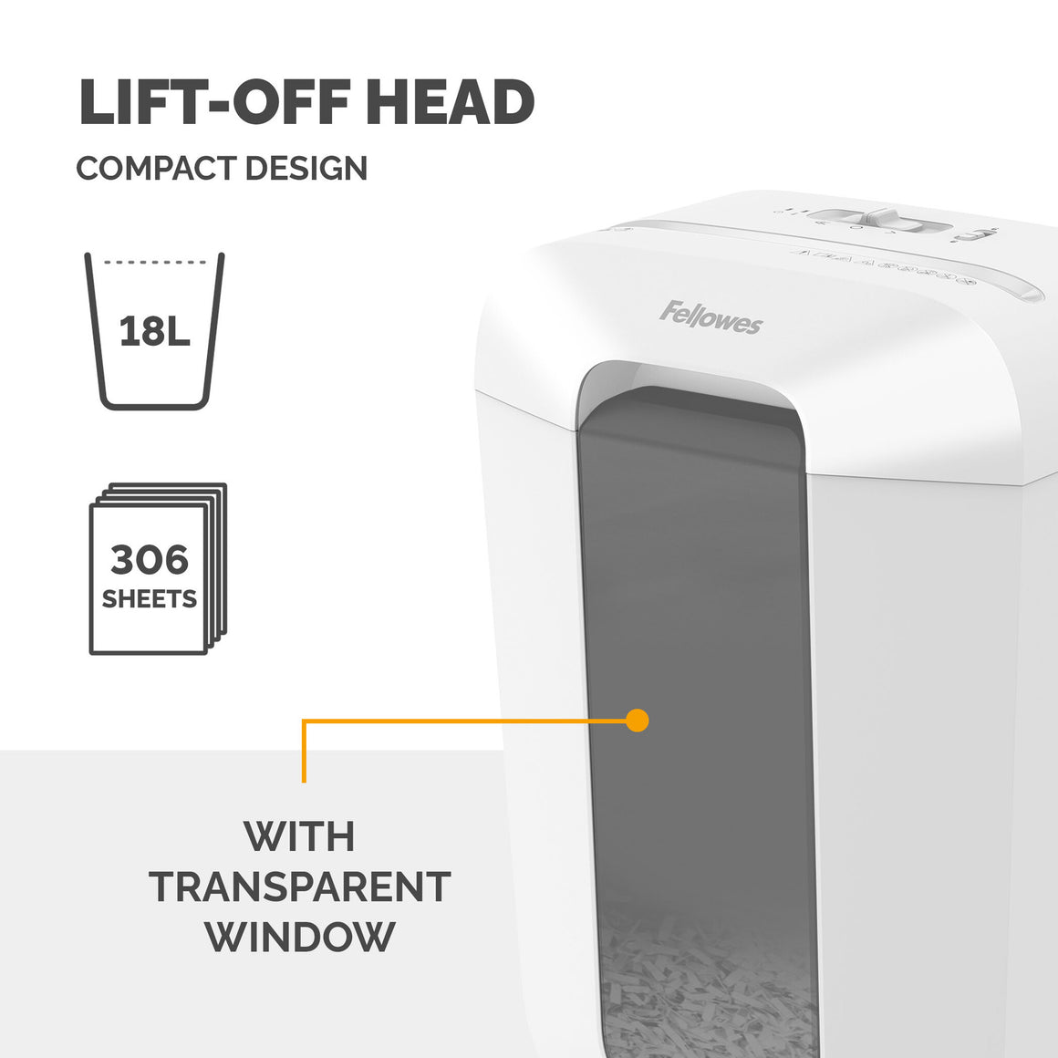 Fellowes LX Series Paper Shredder LX70 11 Sheet Cross Cut Shredder with 18 Litre Bin High Security P4 White