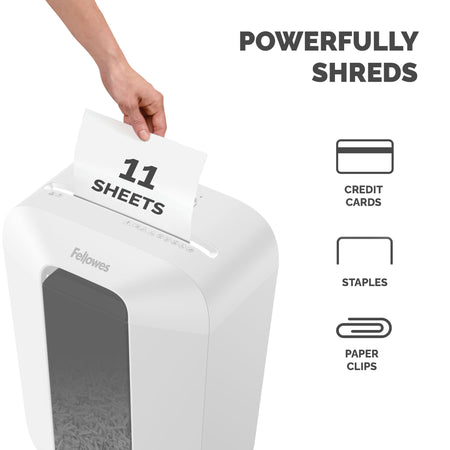 - DURABLE SHREDDING MACHINE - Fellowes shredders are built to last, the paper shredders powerful cross-cut cutters will not only shred your documents into unreadable pieces, but it can shred staples, paper clips and credit cards too
