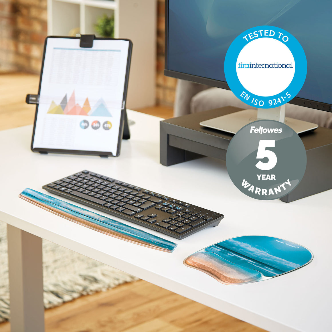 Fellowes Mouse Mat Wrist Support - Photo Gel Mouse Pad with Non Slip Rubber Base & Antibacterial Protection - Ergonomic Mouse Mat for Computer, Laptop, Home Office Use - Sandy Beach