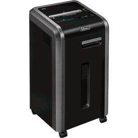 The Powershred 225i strip-cut shredder is a premium 100% Jam Proof machine, designed for commercial use in large offices, ideal for placing in copy areas and utility rooms to ensure a shredding best practice can be rolled out throughout the business and all information can be disposed of safely. This shredding machine shreds paper into 5.8mm mm pieces (P-2) as well as shredding staples, paperclips, credit cards and CD's with a separate throat for CD/DVD's. The continuous duty motor means that the machine can be used at any given time, regardless of how many people have used it beforehand, perfect for high volume shredding. The advanced 100% Jam Proof System eliminates paper jams and powers through tough jobs, so along with the 24 sheet capacity and 240mm paper entry, you can be sure that the shredding process will be productive and fast. It's Sleep Mode feature will cause the machine to shut off after 2 minutes of inactivity. The large 60 litre pull out bin means you will have to empty the paper waste less frequently saving valuable time. Fellowes shredders are built to last with solid steel cutters, a powerful motor and parts that are engineered to outperform our competitors.
