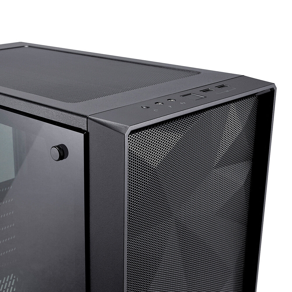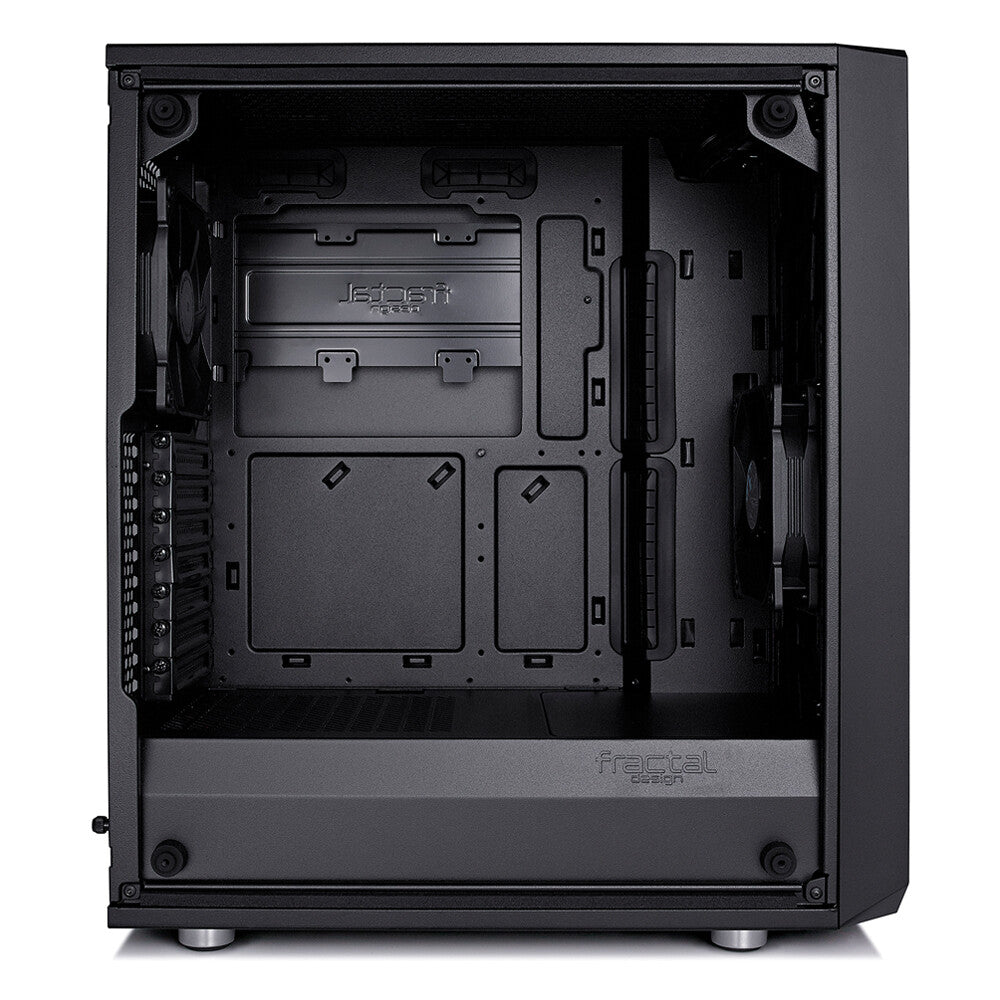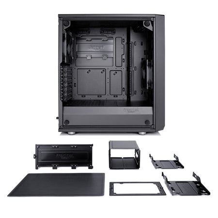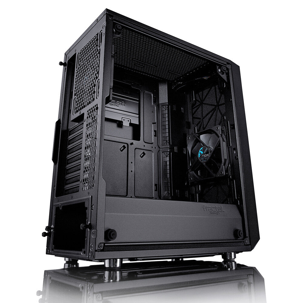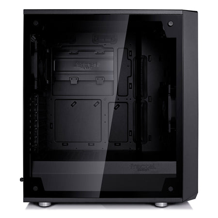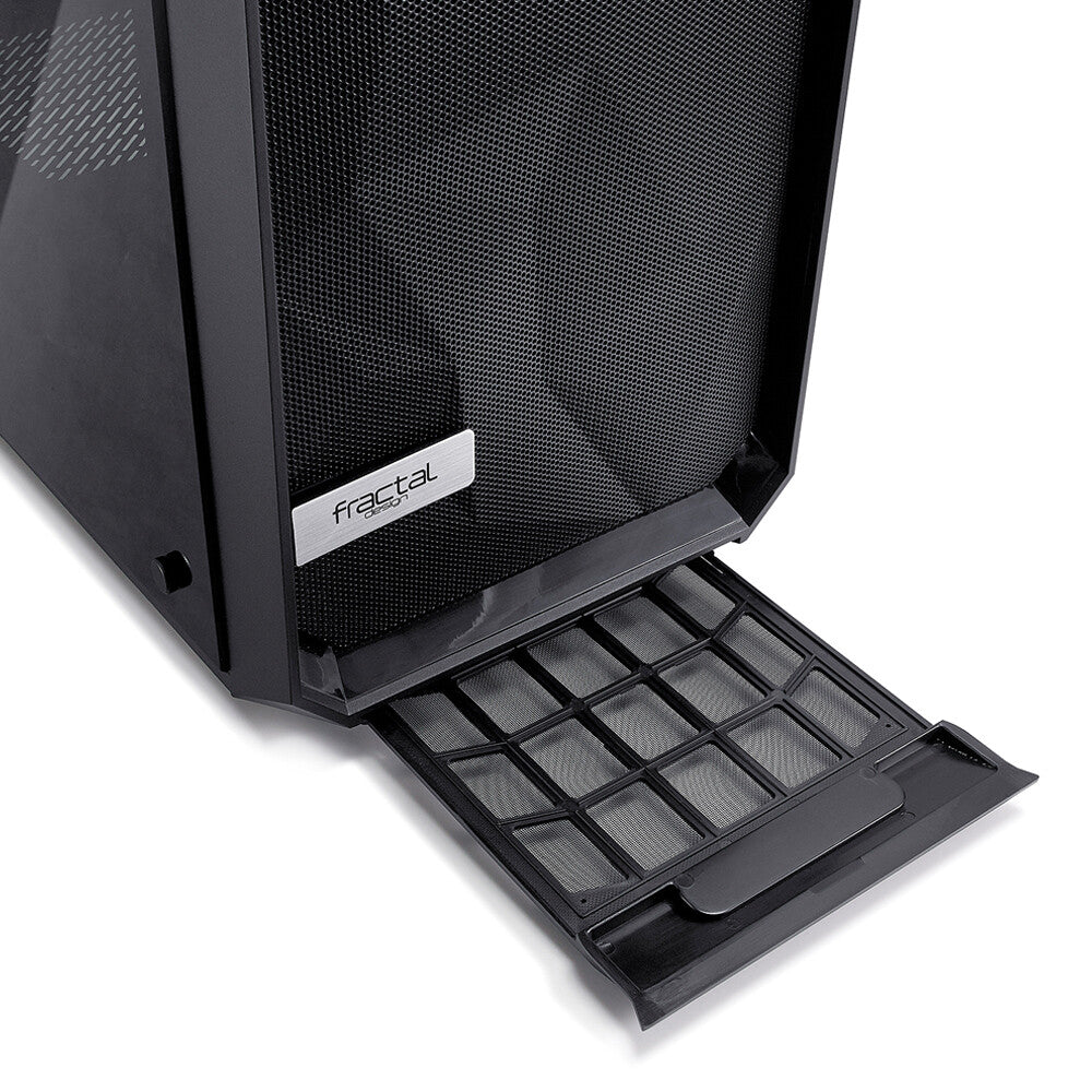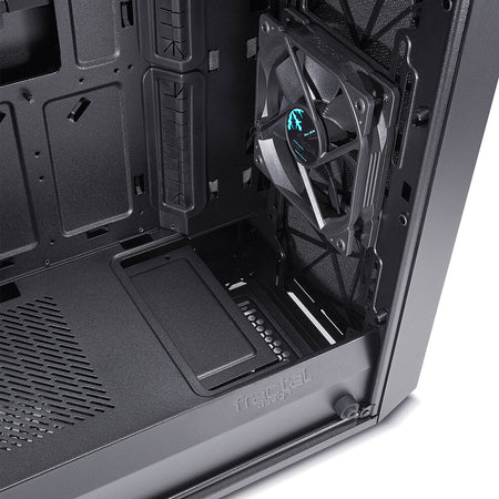 Meshify strikes an aggressive pose in the Fractal Design lineup with unparalleled cooling performance and a defiant new look. Like black diamond facets, the angular asymmetry of the Meshify C carves a space uniquely its own as a new force in high-airflow design. Tempered glass with a distinctive tint completes the stealth-inspired black-on-black aesthetic with exceptional style.