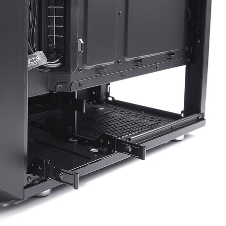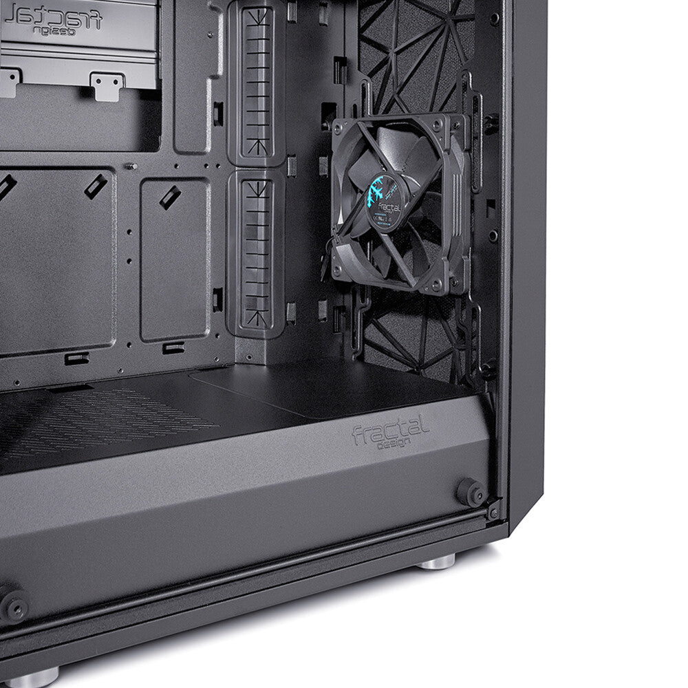 An open ATX layout with intelligent space utilization creates an unrestricted airflow path from the mesh front intakes directly through key components to exhaust, ensuring heat is never an issue. The Meshify C has a remarkably compact footprint with the high-end component support of a larger tower, and with seven fan mounts and multi-radiator liquid cooling capability, it has the cooling capacity to match.