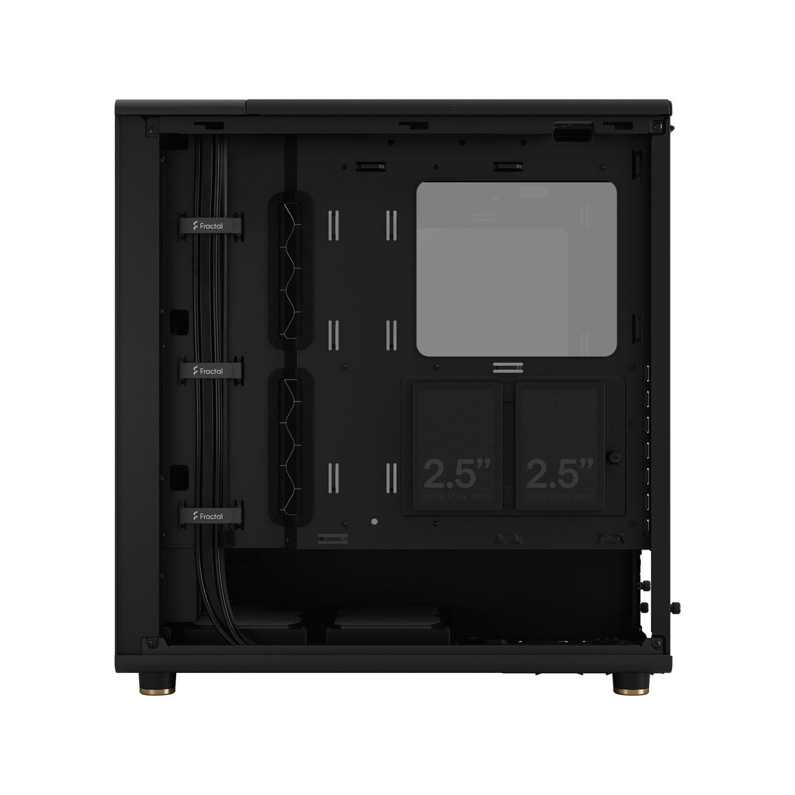 North features two included combined 3.5″/2.5″ drive mounts and two dedicated 2.5″ drive mounts out of the box