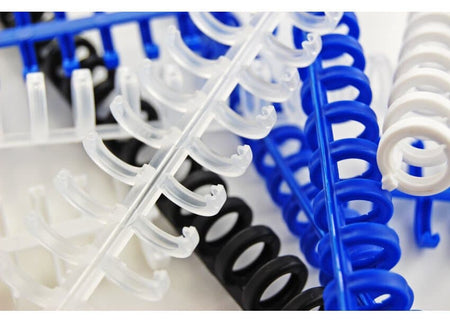 Binding doesn't get any easier! Designed for use with ClickBind machines and compatible with any WireBind system, GBC ClickBind spines add a stylish and durable finish to any document. Documents fold back fully for photocopying, and you can quickly edit them using a special tool to unzip the spine. Colour: frosted clear. Spine: 8mm. For up to 45 sheets. A4 format. Pack size: 50.