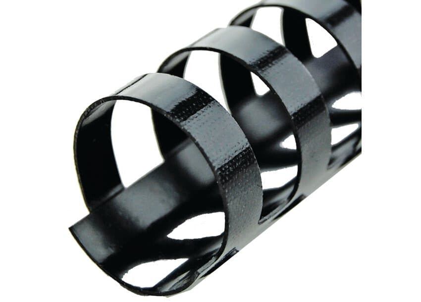 Binding doesn't get any easier! It’s easy to see why the GBC CombBind is our best selling binding spine. Whether you want to produce training manuals or internal reports, CombBind spines enable you to create stylishly bound, editable documents. With a CombBind spine, pages lie flat for convenient note taking and photocopying, and it’s simple to add or remove pages with the special ‘fast edit’ tool. These durable, plastic spines won't scratch, chip, peel or discolour and can be reused time after time. Colour: black. 19mm comb. Up to 160 sheets A4 format. Pack size: 100.