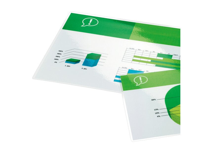 A convenient, everyday solution to protect and enhance valuable presentation pages, reference lists, product sheets, notices etc. 175 micron gloss. A3 format. Pack size:100.