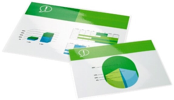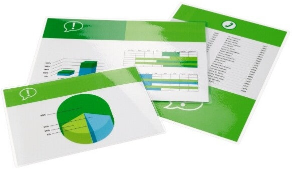 A convenient, everyday solution to protect and enhance valuable presentation pages, reference lists, product sheets, notices etc. 125 micron, gloss. Pack size: 100.