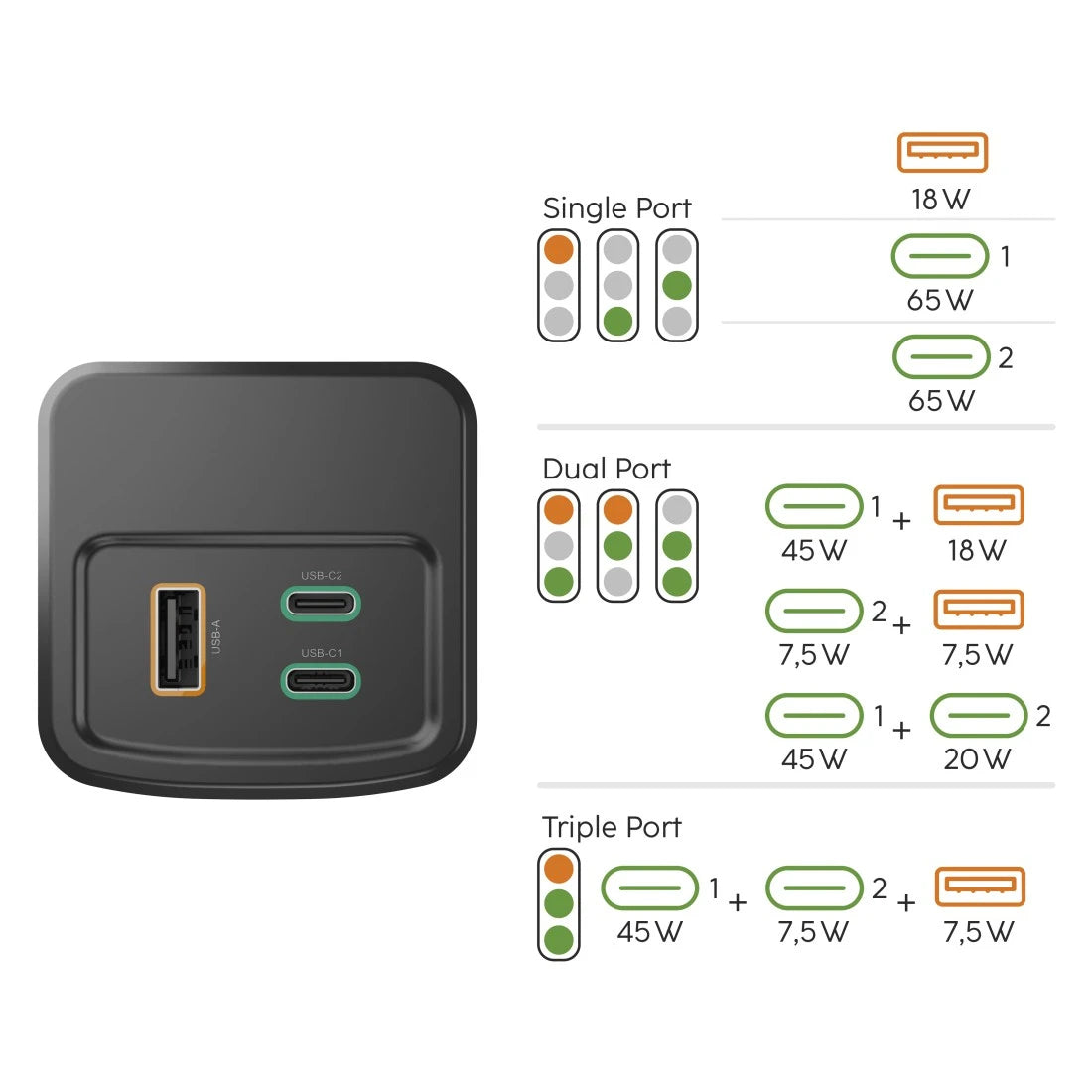 Power in best time: a full 65 Watts of maximum output power quickly revs up even powerful devices such as laptops, gaming notebooks and high-performance smartphones