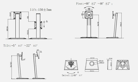 - 4 in 1 Function – Height Adjustable / Tilt / Pivot / Swivel
