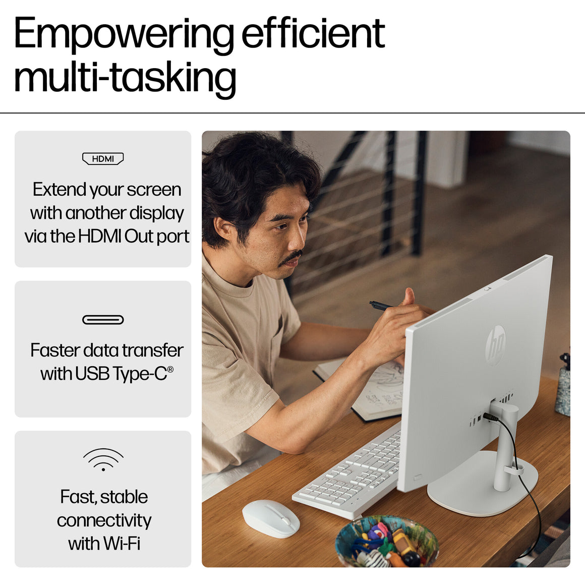 Meet the HP 21.45" All-in-One Desktop PC—your reliable and affordable everyday computing partner. Shop, stream, and connect confidently, with dependable technology, next-level power, and rock-solid performance. Enjoy a stunning display, crisp audio, and sleek design, at an exceptional value. Take on today with tech built for tomorrow.