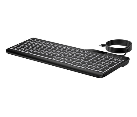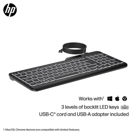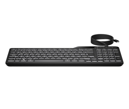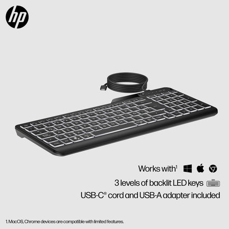 With warm white illuminated keys, this ready-to-go keyboard never misses a beat. Plug into your device and grind away with quiet keys and three levels of backlit LED glow. Plus, skyrocket your productivity with 12 programmable keys. Work and play all day on the slim and sanitizable[1] HP 405 Backlit Wired Keyboard.