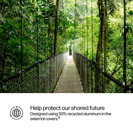 Low halogen; Bulk packaging available; 20% post-consumer recycled plastic; 50% recycled metal; 50% ocean-bound plastic in fan enclosure; 100% of HP paper-based packaging is from recycled or certified sustainable sources |