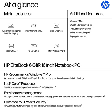 Designed for seamless integration into existing IT infrastructures, the HP EliteBook 6 G1iR 16 inch Notebook PC is an economical, robust, and highly secure business PC. Equipped with essential tools that enable users to perform their tasks from virtually any location.