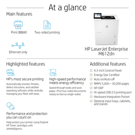 https://support.hp.com/gb-en/product/setup-user-guides/hp-laserjet-enterprise-m612-series/model/31570627?sku=7PS86A&serialnumber=7PS86A ; https://h10032.www1.hp.com/ctg/Manual/c06498743.pdf ; https://h10032.www1.hp.com/ctg/Manual/c06502741.pdf |