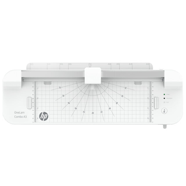 Compared to the HP OneLam 400 A3, the HP OneLam Combo A3 scores with an integrated cutter, which makes it even easier to cut your documents in straight, curled or perforated format. Through use of the angle presets and centimetre grid, your laminated documents can easily be cut to the desired size. Like the other laminators in the HP OneLam range, this handy backloader is suitable for both hot and cold lamination. With a film thickness of 75/80 to 125 microns, you can protect your pictures, timetables or important documents from business cards up to A3 format from dirt and moisture.