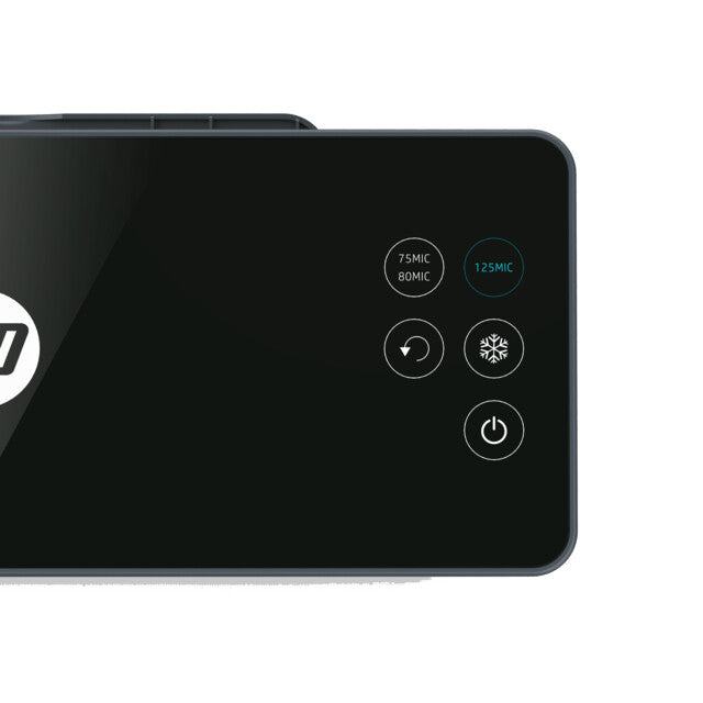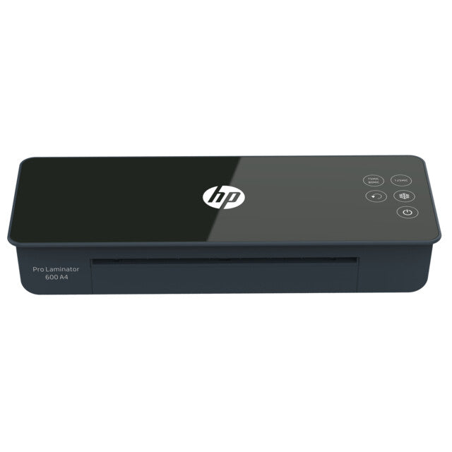 The HP Pro Laminator 600 A4 is the first in this series. The laminator with a high-quality glass surface in regal black design fits on every desk and laminates your important documents in no time. After a warm-up time of just one minute, the powerful laminator is ready for use and laminates at a speed of 600 mm per minute. This corresponds to less than 30 seconds for a DIN A4 sheet. This modern helper convinces with its intuitive touch panel, via which the device is switched on and the required temperature is selected based on the film thickness. A possible film jam is cleared at a touch of the return button and the film is ejected again on the input side.