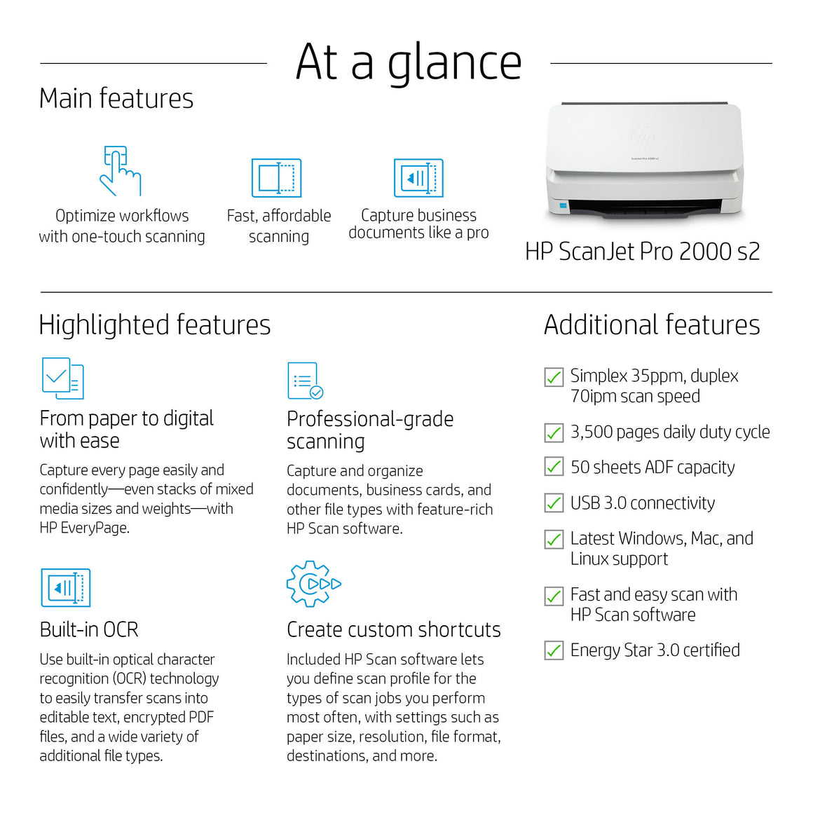 Get fast, two-sided scans in a single pass – recommended for 3,500 pages per day Fast, affordable, and designed to handle everything from simple colour jobs to complex workflows. Quickly and reliably digitise larger projects with scan speeds up to 35 ppm/70 ipm and a 50 page ADF.[1] Recommended for 3,500 pages per day.