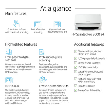 https://support.hp.com/gb-en/product/setup-user-guides/hp-scanjet-pro-3000-s4-sheet-feed-scanner/model/28704129?sku=6FW07A ; http://h10032.www1.hp.com/ctg/Manual/c06556933.pdf ; http://h10032.www1.hp.com/ctg/Manual/c06500895.pdf |