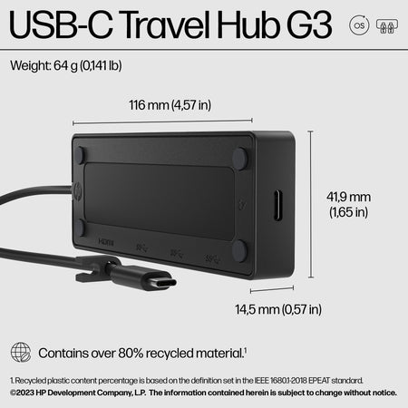 - Besides powering your many devices, this USB-C Travel Hub also has the power to help protect our planet. Each hub contains over 80% post-consumer recycled (PCR) material[5] and comes in FSC-certified packaging.