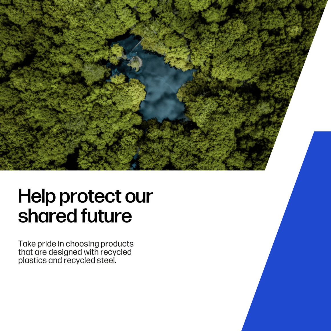 Bulk packaging available; Molded paper pulp cushion inside box is 100% sustainably sourced and recyclable; 10% ITE-derived closed loop plastic; 80 Plus® Platinum power supplies available; Contains at least 60% post-consumer recycled plastic; Outside box and corrugated cushions are 100% sustainably sourced or recyclable |