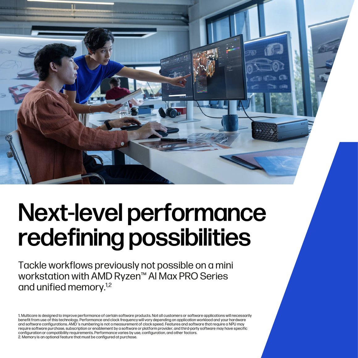 Unlock workflows previously not possible on a mini workstation. Transformative performance is packed into a compact Next Gen AI PC to take on complex AI accelerated projects like never before— simultaneously 3D design and render graphics-intensive projects or work locally with LLMs.