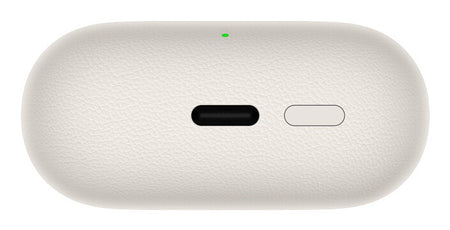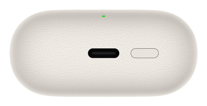 The charging case fuses fine-grained synthetic leather with futuristic metal,3 and the earbuds come in two dazzling colours, Beige and Black.