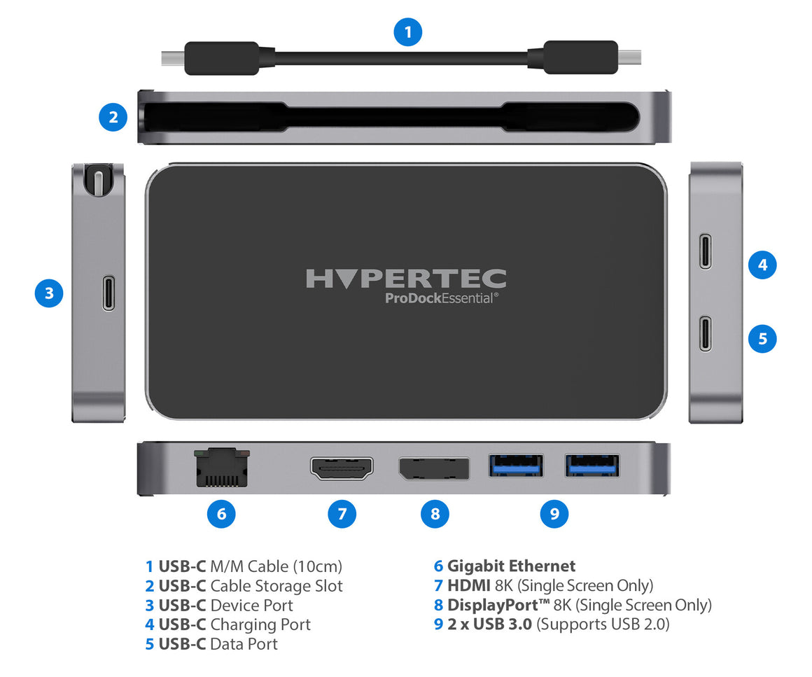 Lightweight and portable, the ProDockEssential is the perfect solution for charging, data transfer, and vi