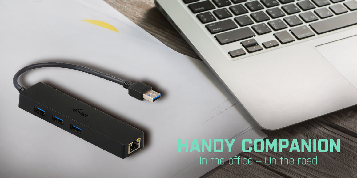 Combination of passive USB 3.0 HUB with Gigabit Ethernet adapter, for easy and fast connection of your favorite USB peripherals to your notebook, tablet or PC using a single USB cable, and for fast network and Internet access with Gigabit Ethernet connection. Thanks to its compact dimensions and low weight it is an ideal accessory when traveling.