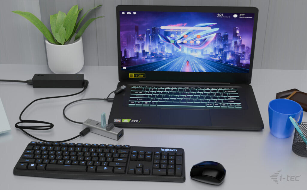 With this hub, you get an additional 4 USB ports (2x USB-A and 2x USB-C). Connect an external keyboard and mouse, transfer data or movies from a USB flash drive at up to 5 Gbps and charge your notebook/tablet at up to 85W. *