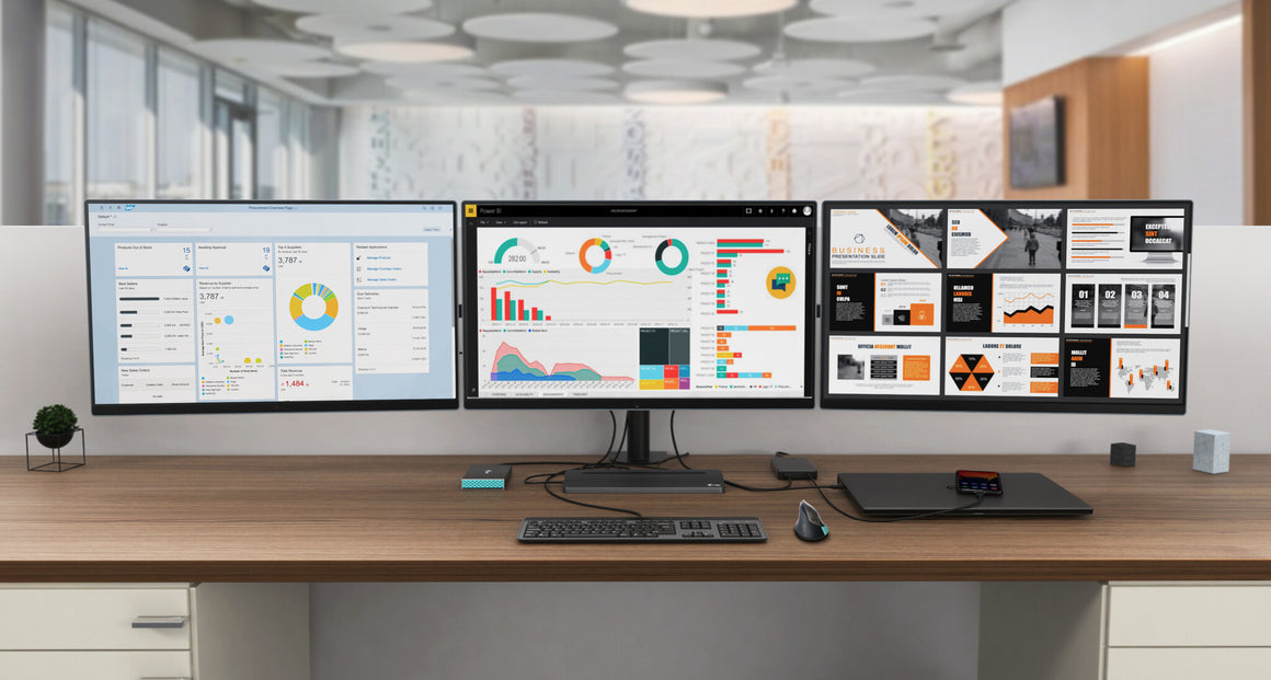 Note: macOS does not support Multi Stream Transport (MST) technology, meaning that when connected to a device running macOS, all connected monitors will display the same image.