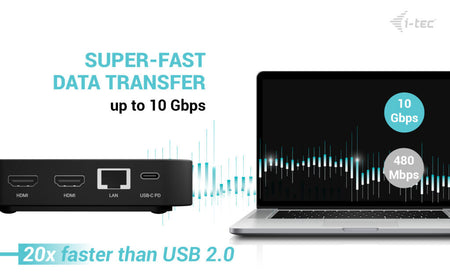Modern USB-C office docking station with support for up to 2 external monitors with 4K resolution. The station is compatible with any laptop equipped with a USB-C, USB4 or Thunderbolt 3/4/5 port. 6x USB ports, reliable and quick connection to your business network thanks to an integrated LAN port and support for installation behind a monitor make the docking station an ideal partner for professionals. And of course, the station is capable of charging your laptop or tablet with up to 100W.