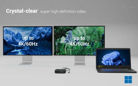 - Connect up to two 4K/60 Hz external monitors