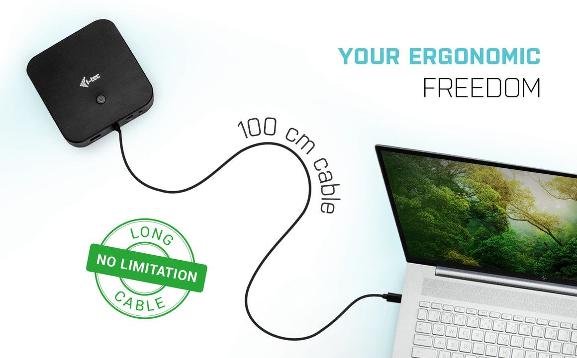 The high-quality USB-C cable with a length of one meter will provide you with enough space on the table and, most importantly, the opportunity to organize your work environment according to your requirements. Shorter cables often limit the variability of use, and in some cases even prevent the connection of all necessary accessories.