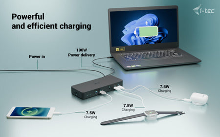Plenty of USB ports (including those support Gen 2 speeds of up to 10 Gb/s), reliable and fast connection to the corporate network thanks to the integrated LAN port and support for installation behind the monitor all make this docking station the ideal companion for true professionals. Of course, it supports charging of your laptop or tablet, up to 100 W.